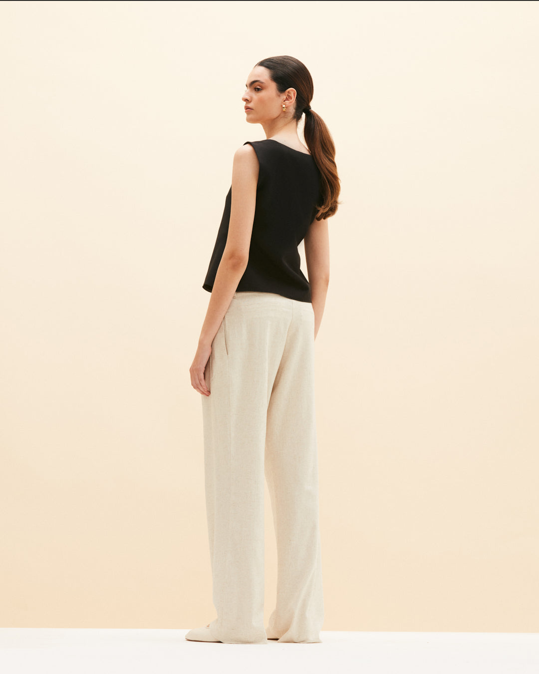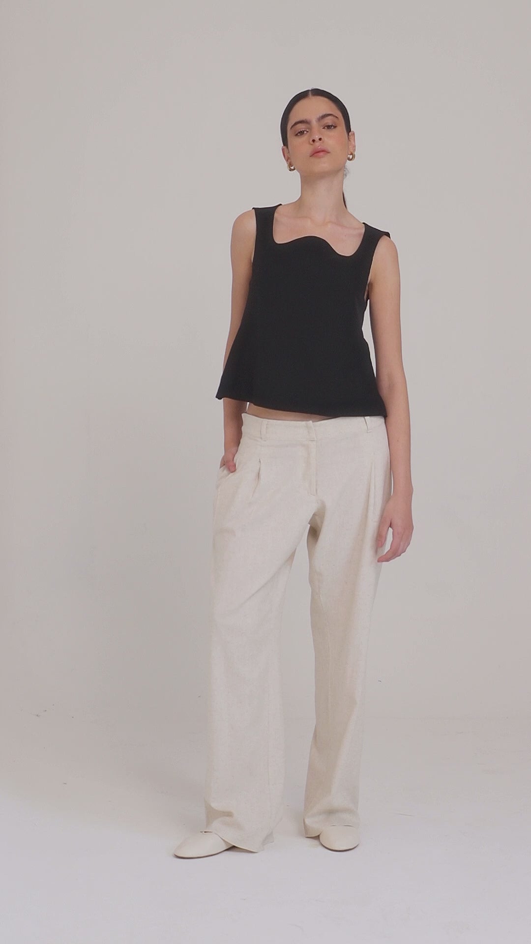 Blusa sin mangas con silueta en A y diseño curvo en escote.