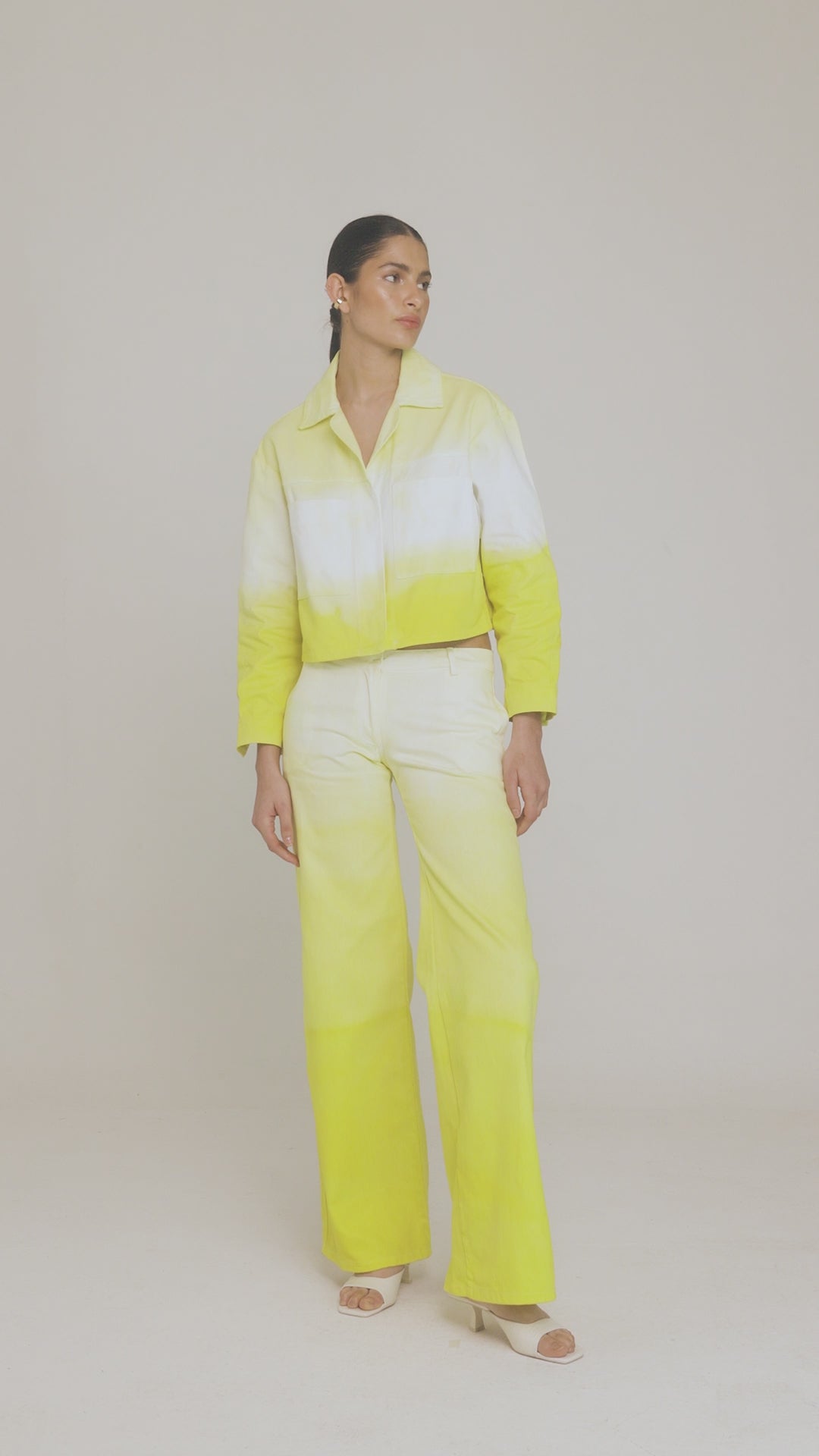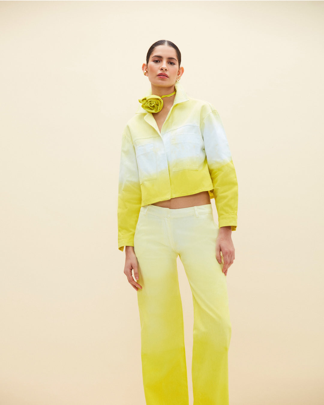 Chaqueta de jeans 100% algodón efecto degradé. Bolsillos cuadrados. Apertura frontal abotonada.