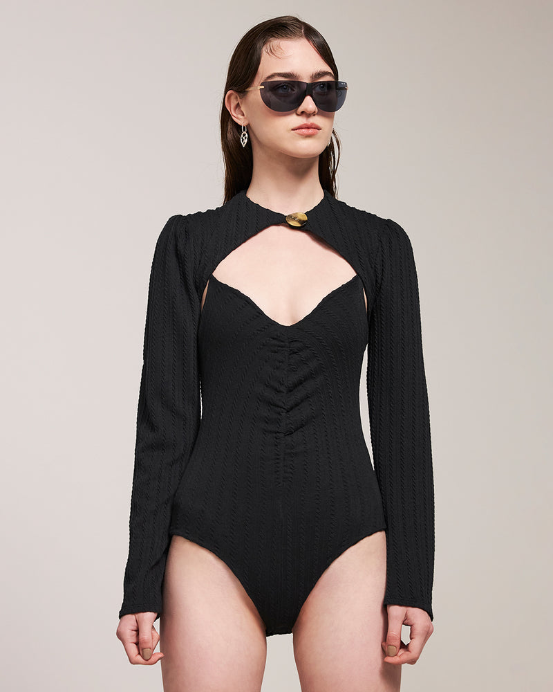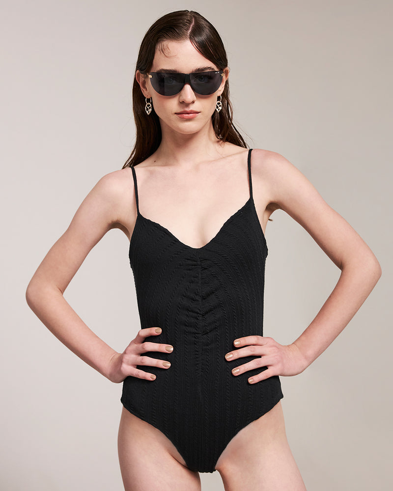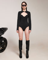 Body de pabilo en tejido de punto, con escote corazón fruncido. Apertura con broches a presión en entrepierna para mayor comfort.