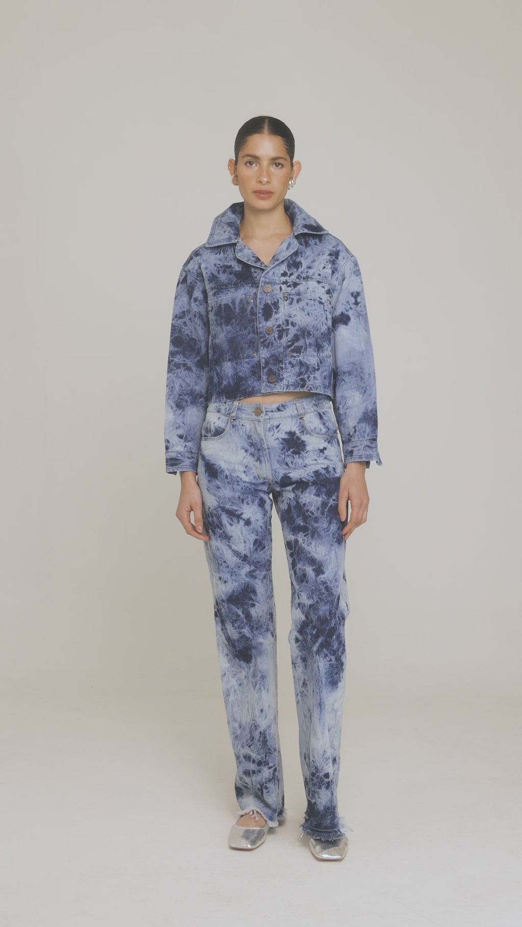 Jeans 100% algodón, de tiro medio, pierna recta y efecto tie-dye. Cierre frontal con cremallera y botón metálico LH