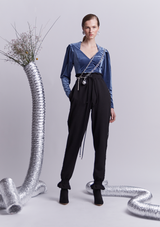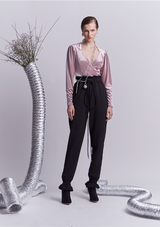Pantalón jogger en piqué de tiro alto. Detalle banda lateral joya fantasía. Cintura elástica ajustable con lazo. Bolsillos laterales. Bajo acabado con elástico.