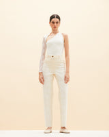 Lavable a mano con temperatura fría y jabón líquido suave especial para ropa delicada. No lavar con lejía. No secar a máquina. Secar a la sombra verticalmente. Planchar hasta 110ºC sin vapor, sin presión, preferiblemente por el interior. Utilice protección de hierro.
