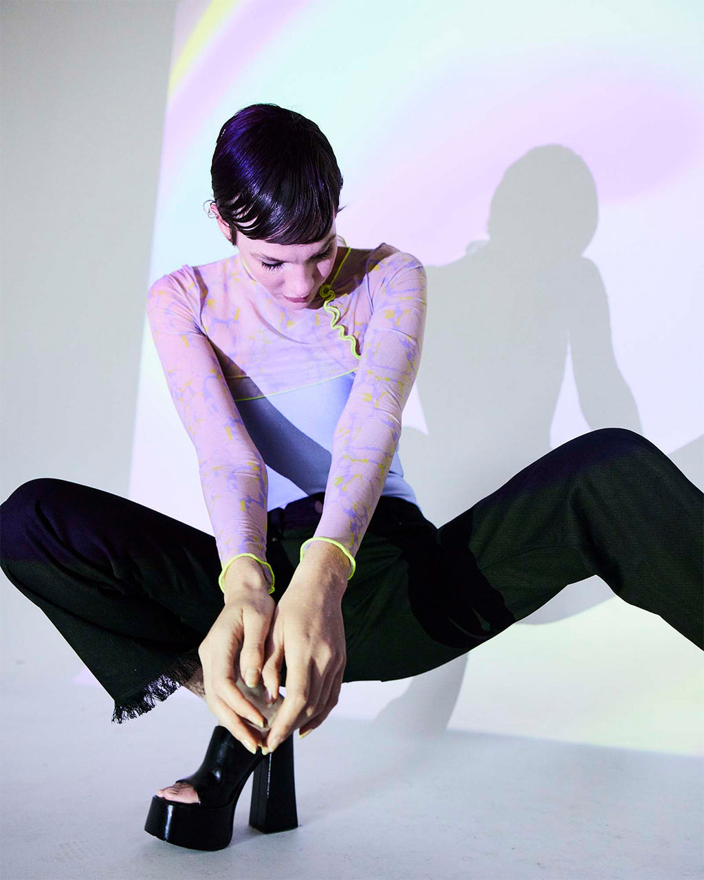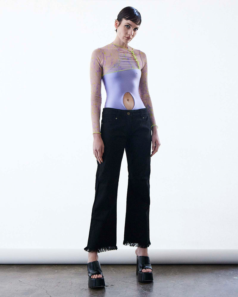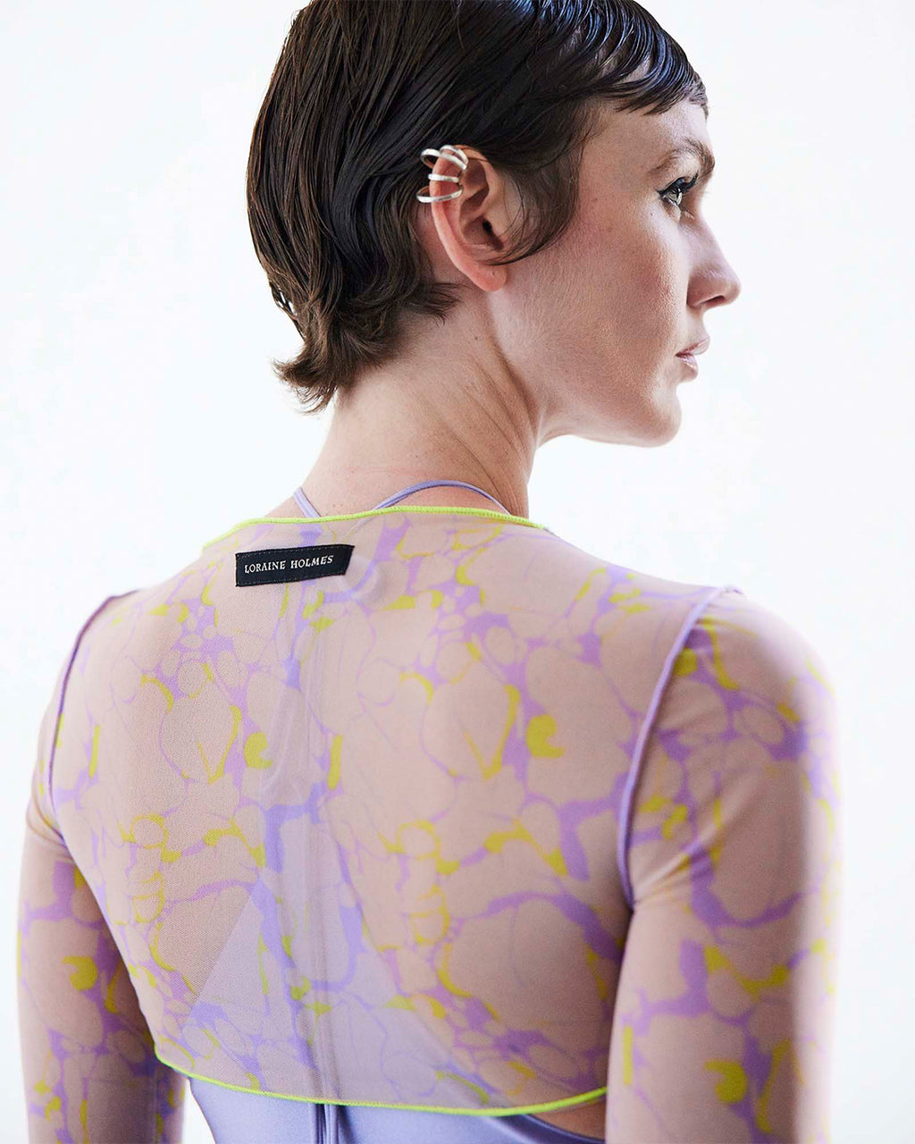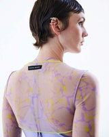 Bolero corto manga larga en malla elasticada estampada. Detalle de terminaciones en roulé. Diseñado para usar como accesorio sobre otra prenda aportando color y diseño al look.