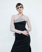 Bolero corto manga larga en malla elasticada estampada. Detalle de terminaciones en roulé. Diseñado para usar como accesorio sobre otra prenda aportando color y diseño al look.